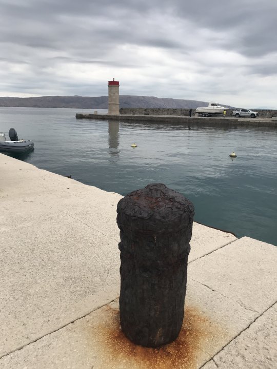In Senj im Kvarner habe ich diesen Leutturm gesehen und in den Hintergrund zu einem verosteten alten Poller gesetzt. Der Leuchtturm erfüllt bis heute seinen Zweck. Der Poller übrigens auch...