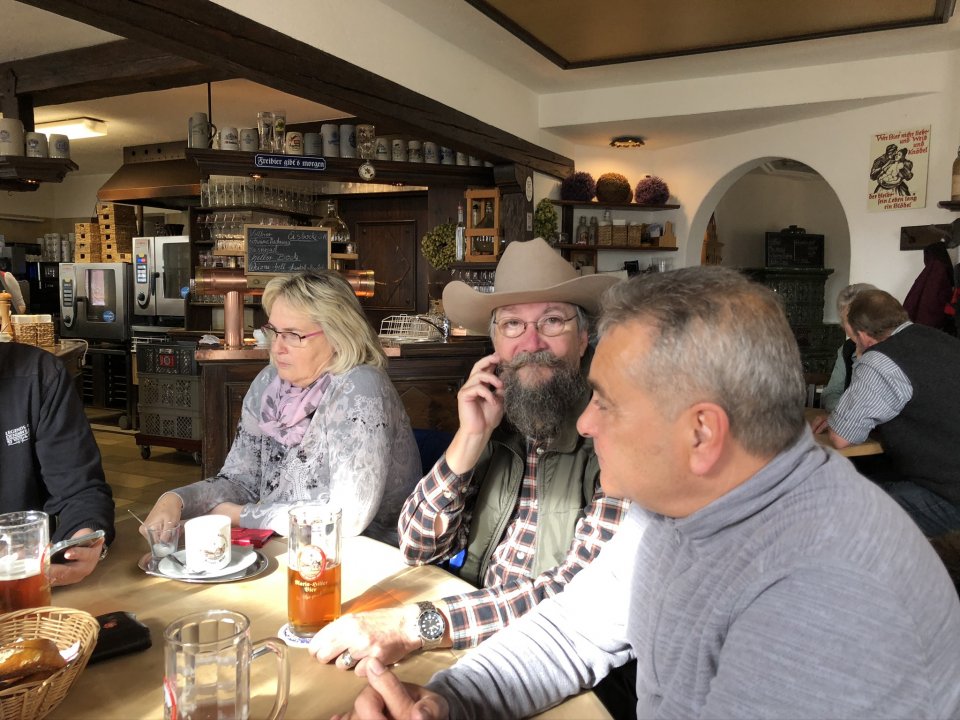 Nachdem ich die Geschichte erzählt hatte, blickte ich ungläubig auf unseren Allgäuer Forumstisch, ja, was war das denn? Wie weiter oben und wie von Zauberhand - simsalabim- war schon wieder der 50€-Schein verschwunden! Jürgen hat die allgemeine Ablenkung während ich erzählte, hinterhältig für seine eigenen geizigen Machenschaften genützt, und zack, da war der Schein schon wieder weg, und seine Geldbörse hatte er nun tief in Angelikas Handtasche vergraben.